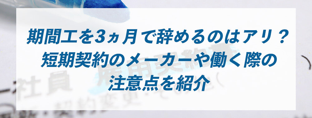 期間工を3ヵ月で辞めるのはアリ?短期契約のメーカーや働く際の注意点を紹介