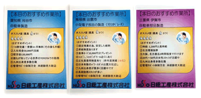 せっかく仕事をするからには、やはり自分には何が最善か慎重になりますよね。 福岡事業所ではその日その日でおすすめのお仕事を『おすすめポイント』をまとめ、面接スペース内に掲示しています。気になるものがあればお気軽に面接担当者にお伝え下さい。