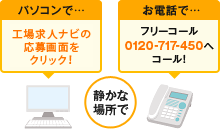 電話での応募も可能です。その場合は、フリーコール0120-717-450へお掛けください。