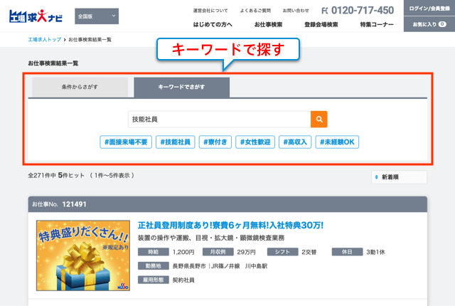 工場求人ナビの使い方