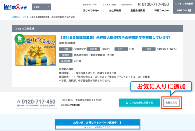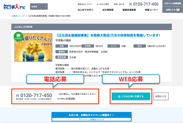「工場求人ナビ」を見た!とお伝えください。