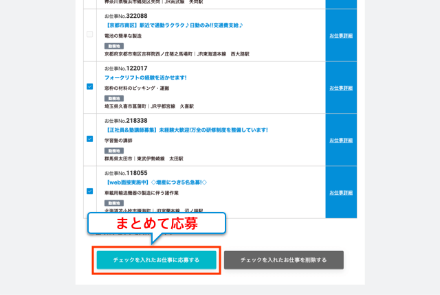 お気に入りに追加したお仕事は、一括して応募することができます。