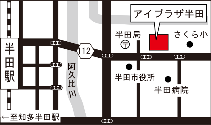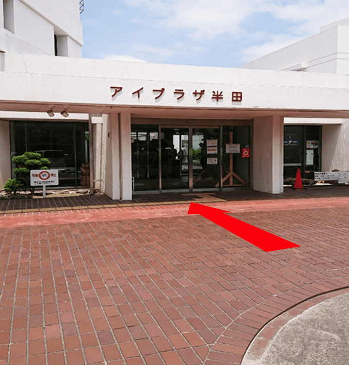 「愛知県半田市東洋町一丁目8番地 アイプラザ半田」を目指して来てください。