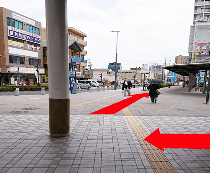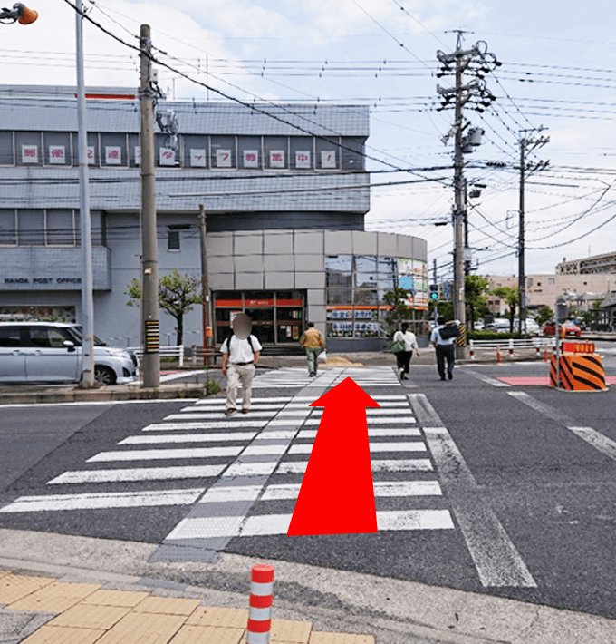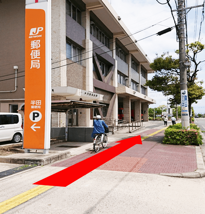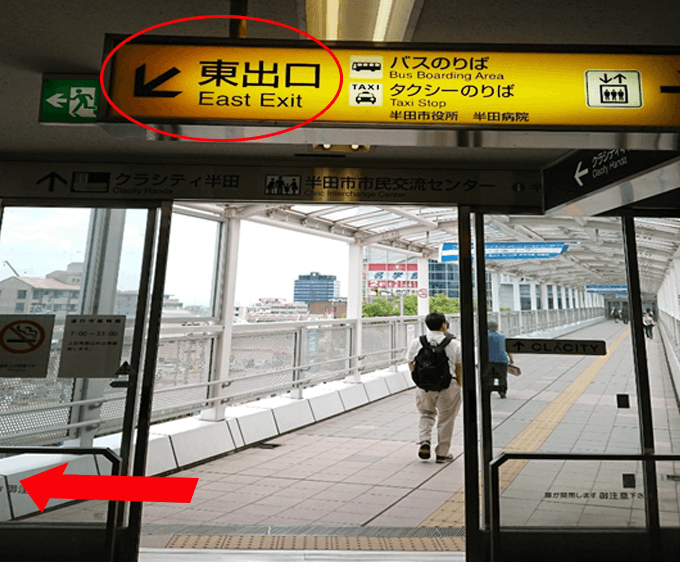 「知多半田駅」を下車し、改札を出たら右に曲がります