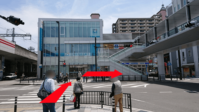 横断歩道を渡り、「ローソン」のある角を左に曲がります