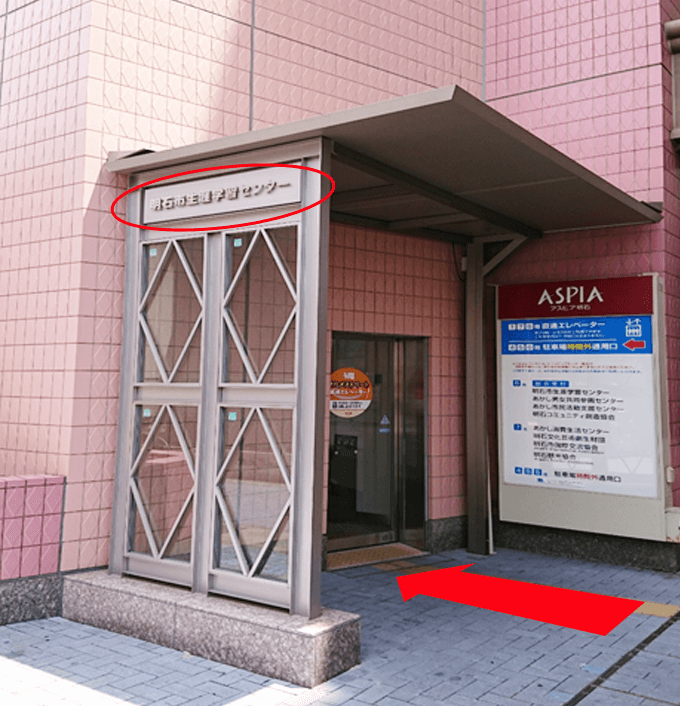 「ASPIA」正面入り口より向かって左手、「ウィズあかし」用の小さな入り口に入ります。