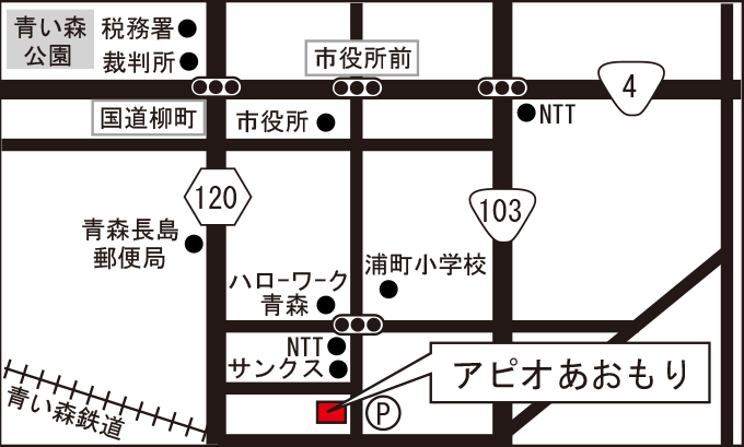 「青森県青森市中央3丁目17-1 アピオあおもり」を目指してください。