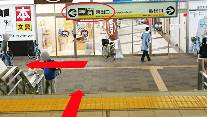 改札を出たら、東出口(階段を降りて左側)へ進みます