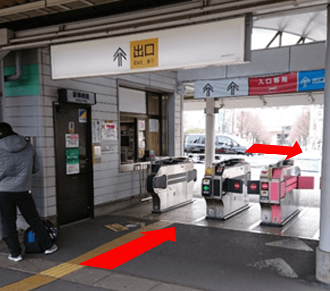改札口を出て右側へ、「エスフォルタアリーナ八王子(面接会場)」がすぐ目の前に見えます