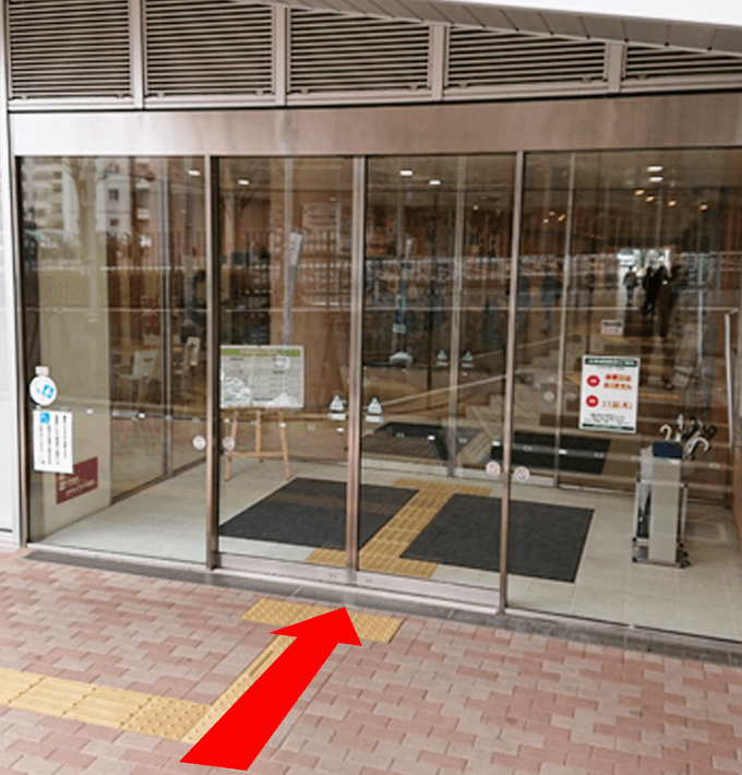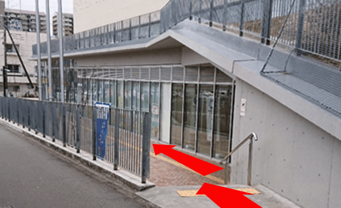 改札口を出て、目の前の横断歩道を渡り、左側へ歩道を建物沿いに下ります