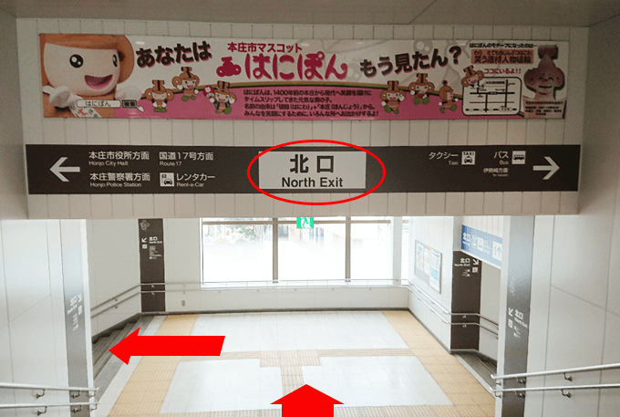 「本庄駅」改札を出ましたら「北口」(左方向)に進みます