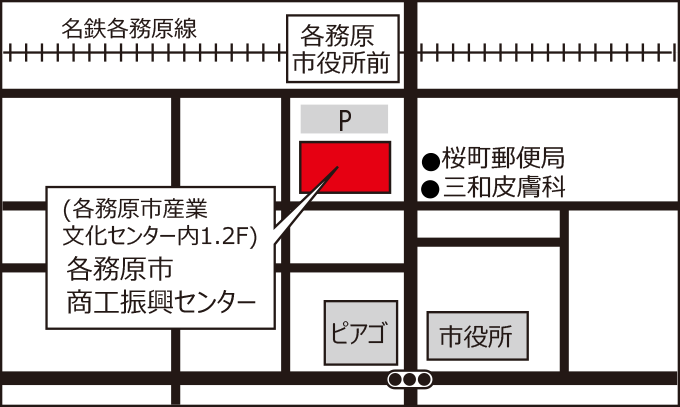 「各務原市那加桜町2丁目186番地 各務原市商工振興センター」を目指して来てください。