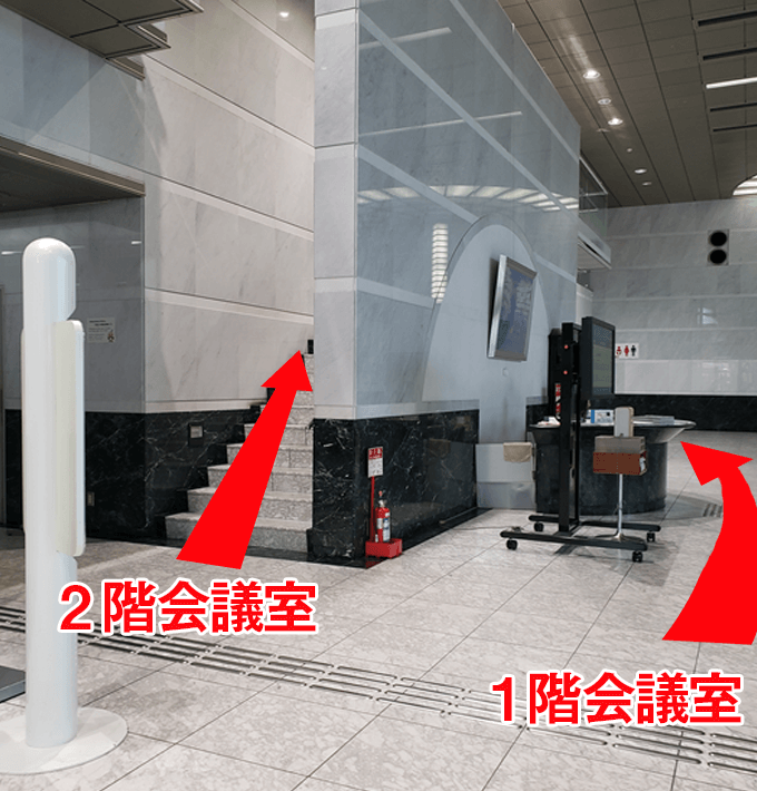 2階会議室での面接の場合は左手の階段を上り2階へ。