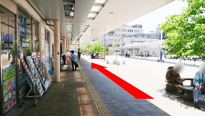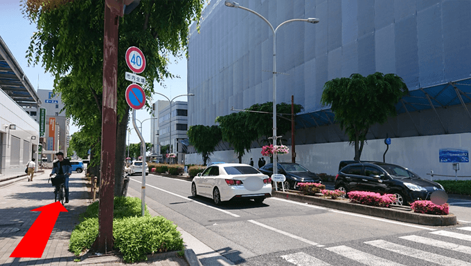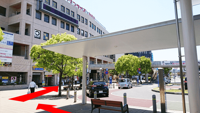 駅ロータリー沿いに右に曲がって、しばらく直進します