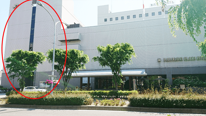 右手に見えてくる「加古川プラザホテル」に併設している建物が「加古川商工会議所(面接会場)」になります