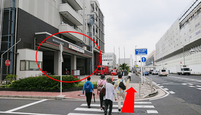 しばらく進むと、左に「消防署」が見えます