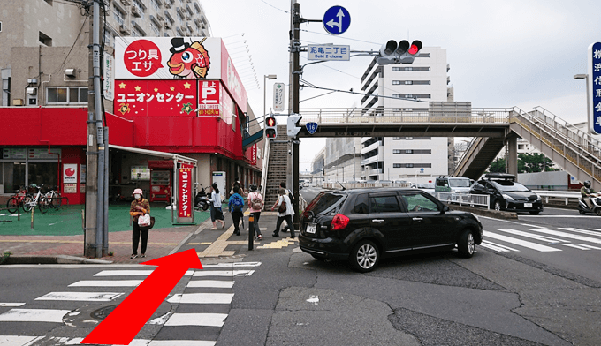 交差点を渡り、まっすぐ進みます