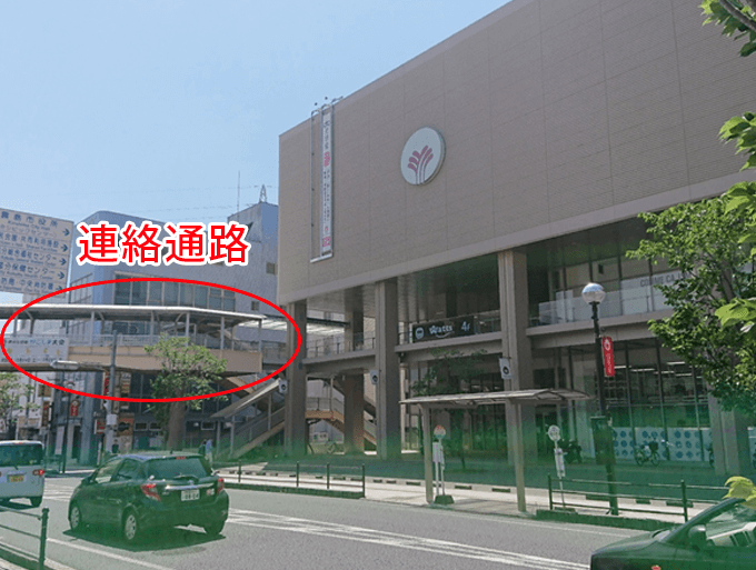 (画像の連絡通路を通りますと、会場受付のある2Fに着きます)