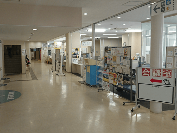 2Fに上がると、インフォメーションがありますので、面接会場が分からない場合はこちらでご確認ください