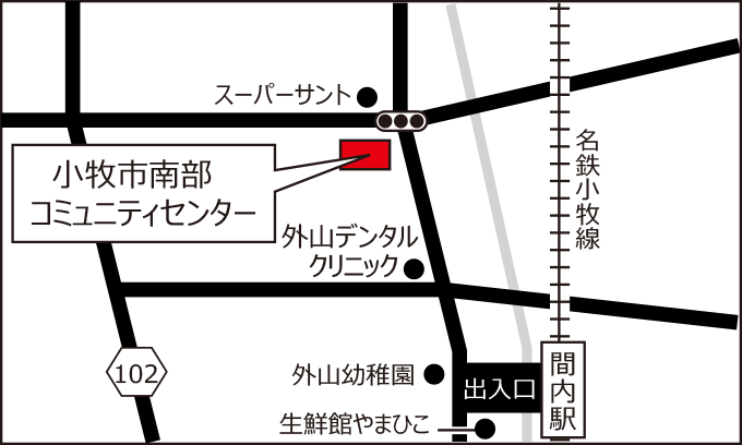 「愛知県小牧市大字北外山1187 小牧南部コミュニティセンター」を目指してください