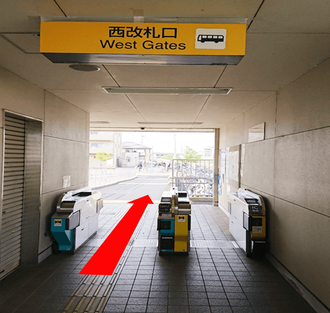 「間内駅」で下車し、「西改札口」の案内盤を目印に進みます