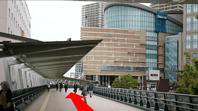 改札を出て、少し進むと左手にミューザ川崎までつながるデッキがあります