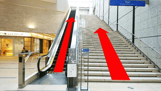 階段もしくはエスカレーターで上がります