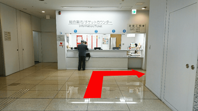 上がると広場があり、右手に受付があります。受付右手にある会議室入口の自動ドアをお入り下さい。