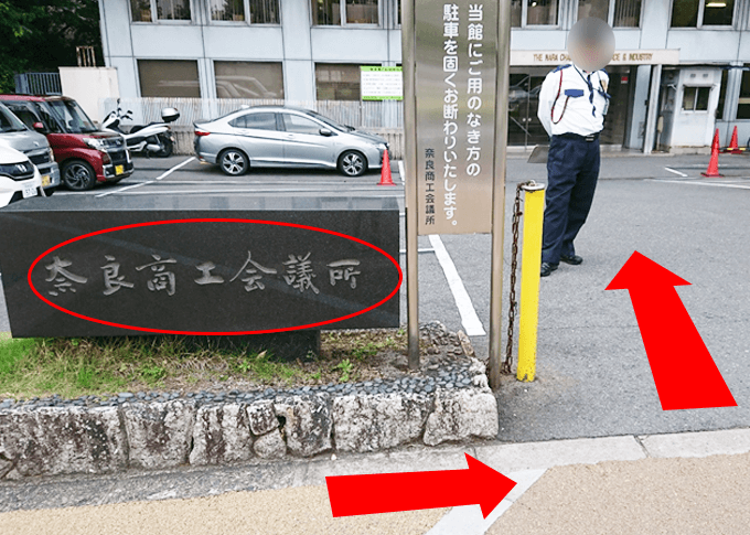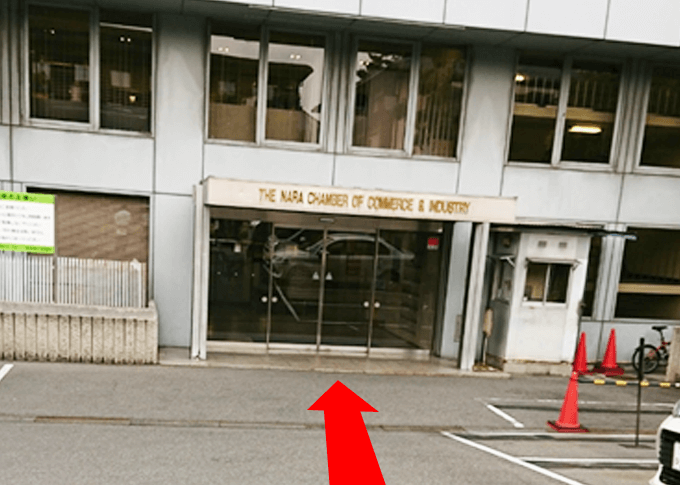 「奈良県登大路町36-2 なら商工会議所」を目指してきてください。駐車場はお近くのコインパーキングをご利用ください
