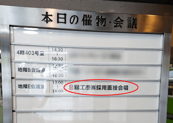 1階ロビーで、「面接会場の部屋」をご確認いただき、入室して下さい