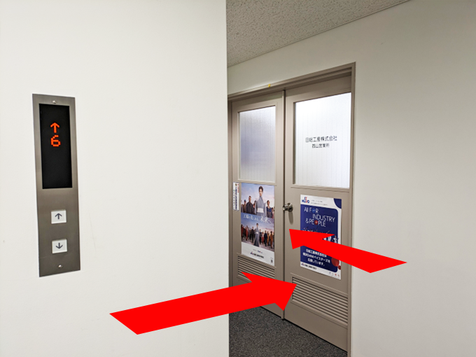郡山営業所の入口はエレベーターを出て、左側にあります。