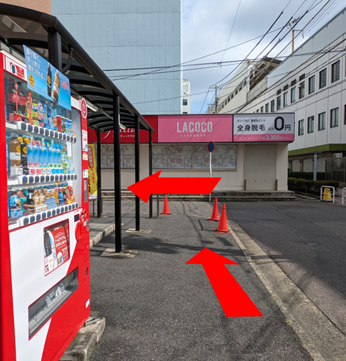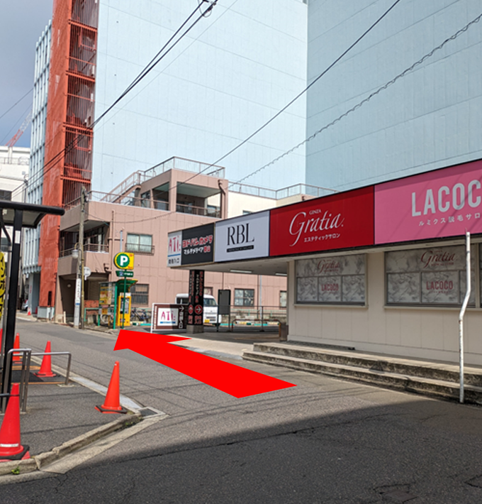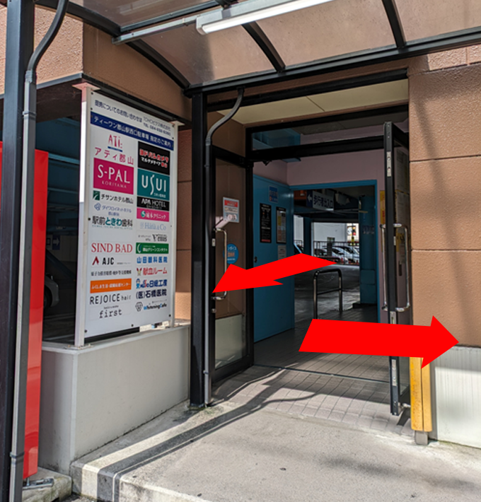 立体駐車場の階段を降りて、車で入った入り口とは逆方向に向かいます。