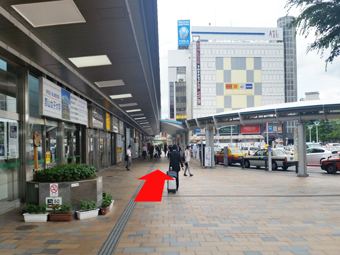 タクシー乗り場を右手に見ながら直進してください。