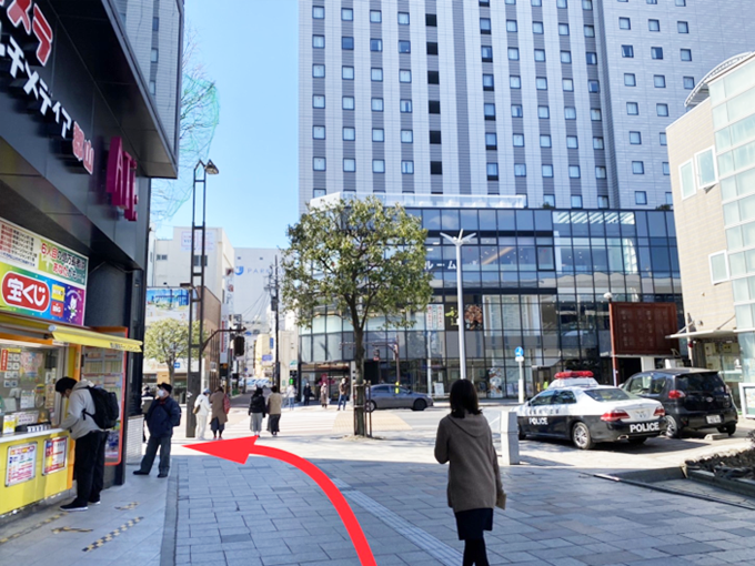 正面に見える「ヨドバシカメラ」を目指してください。