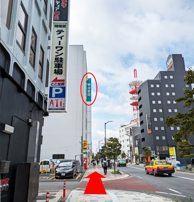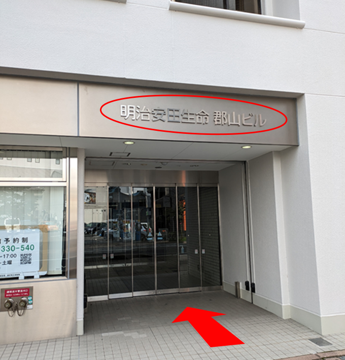 直進すると見えてくる「明治安田生命郡山ビル」に郡山営業所があります。