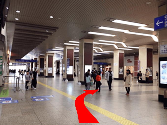 改札を背に少し直進したら、右側に曲がり、「南側出口」に向かいます
