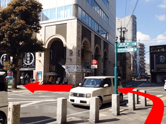 「宝くじ売り場」が見えてきたら、左に曲がり、宝くじ売り場前を通り過ぎます