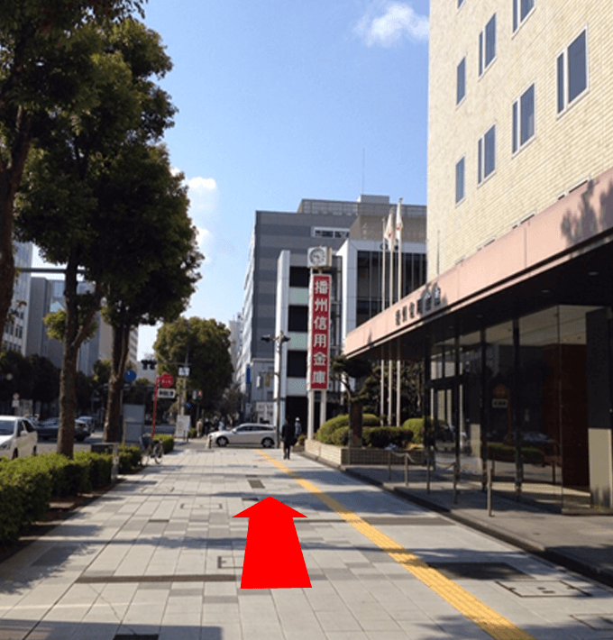 二つ目の信号(豊沢町交差点)を渡り、右手にあるビルが「姫路サテライト」の入っている「タイホービル」です