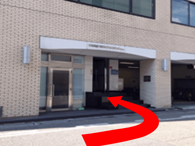 手前のエントランスから入り、エレベータを使って5階にお越しください