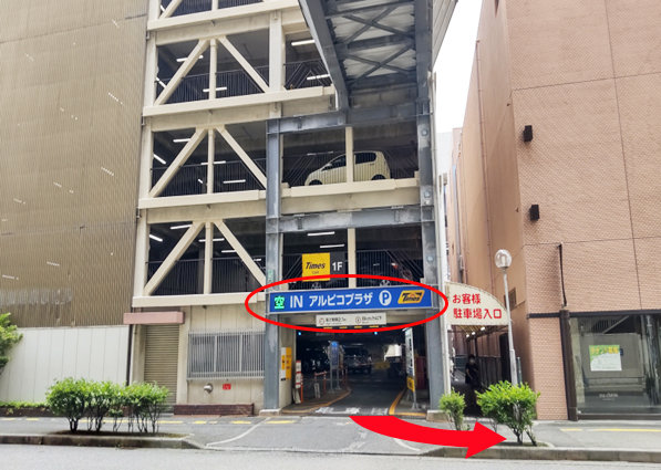 松本駅前「丸善(本屋)」「井上百貨店」より直進左側にある「アルピコタイムズプラザ立体駐車場」に駐車してください。