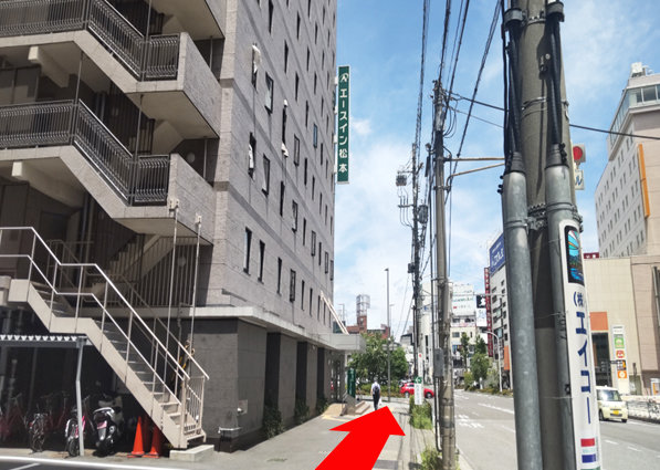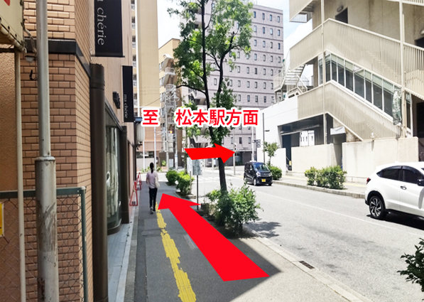 駐車後、駐車場を出て左手(松本駅方面)へ向かいます。