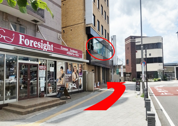 「Foresight(メガネ店)」の横の茶色いビルが「朝日生命保険相互会社松本ビル」です。
