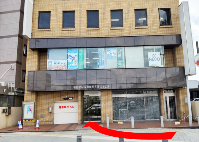 前方に見える茶色いビルが「朝日生命保険相互会社松本ビル」です