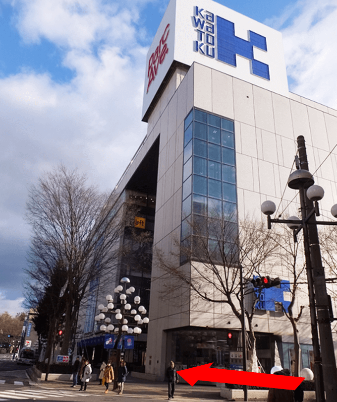 500メートルほど直進すると、右手に百貨店「カワトク」が見えてきます。