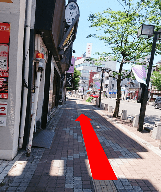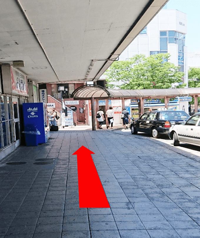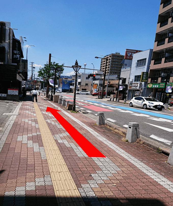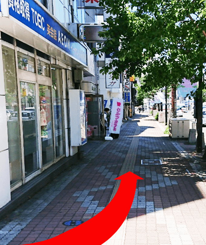 外に出たら、左に曲がって進みます