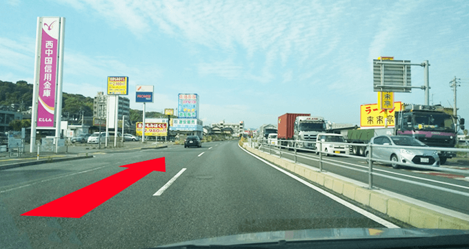 「国道2号線」に沿い約900m直進中の途中の風景です