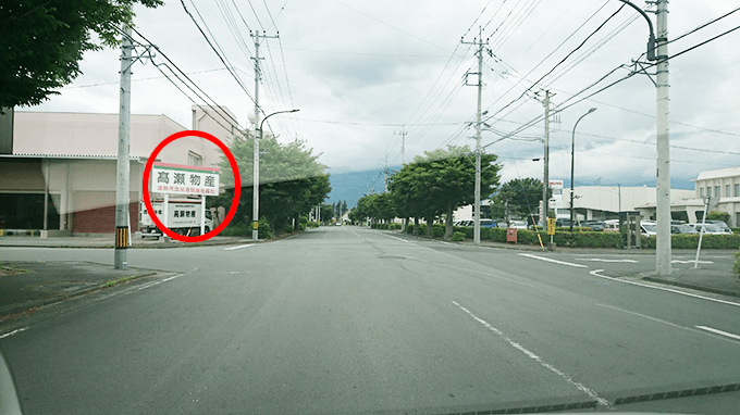 信号の無い交差点4つ目(髙瀬物産の看板が左手にあります)を右折します