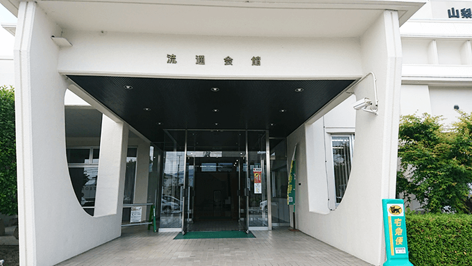 写真の【流通会館】と書かれている玄関から入館します。