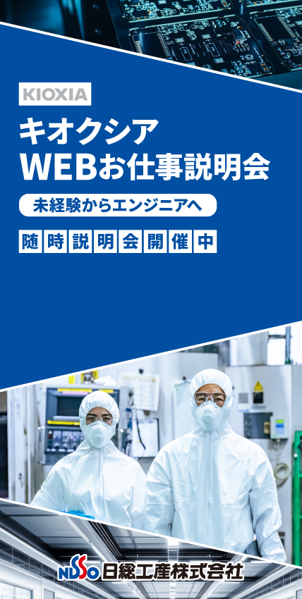 需要がますます高まる半導体業界。中でも国産半導体メーカーの売上高No1を誇るキオクシアが設備保全エンジニアを大募集です。