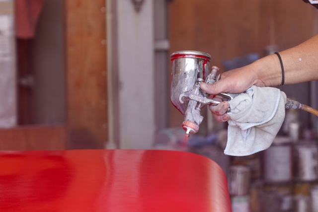 溶接され、組み付けられたキャブ(乗車部分)の塗装を行う工程。